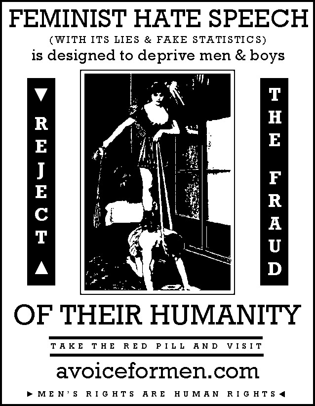If anyone wants to help AVFM in its publicity campaign, the super-sarcastic poster below, and a number of other poorly thought out and badly designed posters, can be downloaded from AVFM here by “anyone who wants to print and distribute them.”