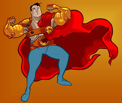 @Paradox: The closest I’ve seen to a skimpy Superman outfit was this charming piece by Jon Morris, who was imagining him in a sort of Jack Kirby “New Gods” style, as a solar hero: