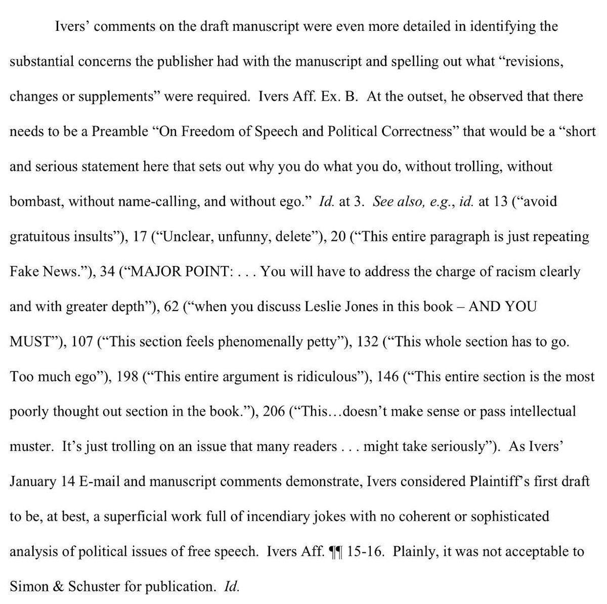 More editor’s comments on Milo’s manuscript. The entire MS, with comments, is available in the court documents, and she’s posted a whole load of them. It’s brutal.